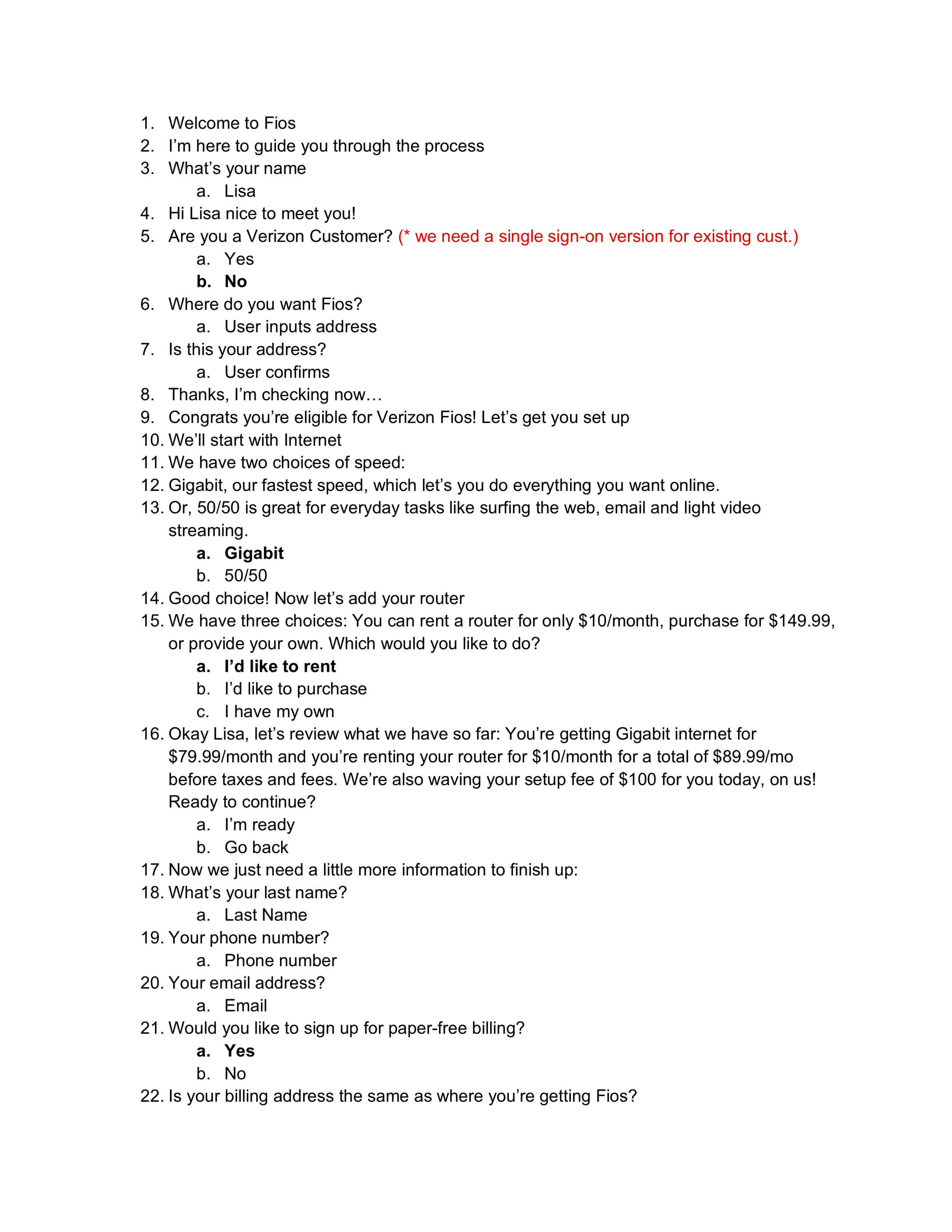 When someone orders Fios on the phone or door-to-door agents come to your home or you’re in the store speaking with retail staff, having those conversations are invaluable. Those conversations are the reason why Verizon has won many awards for its customer service. What better way to model this new product after.